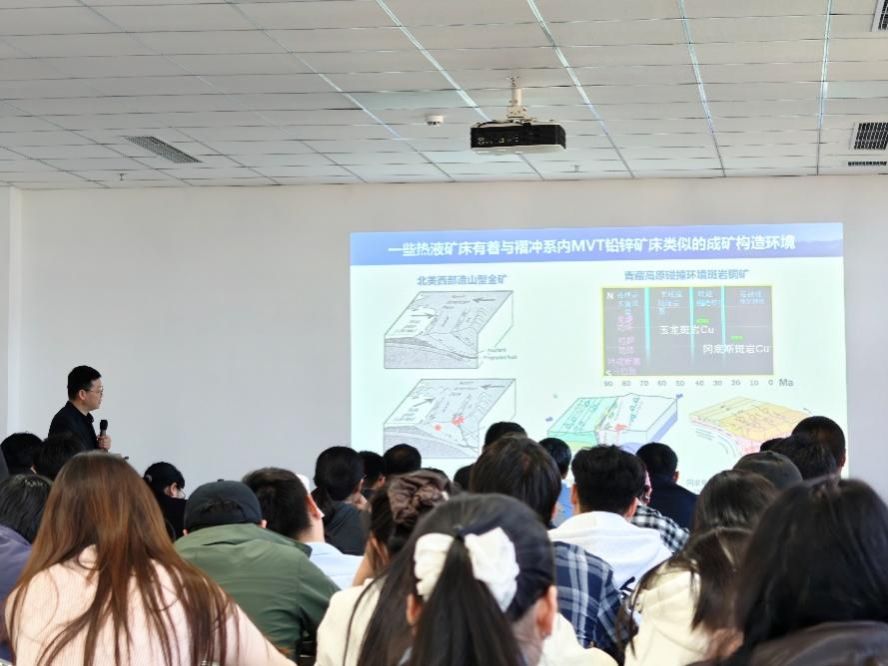 每场报告结束后,与会师生积极交流,围绕MVT矿床的找矿标志、成因模式,燕山运动与区域成矿规律等热点问题,与主讲人展开了热烈而深入的讨论。宋玉财研究员结合自身多年的野外与科研经验,系统解答了师生关于沉积岩容矿铅锌矿床成因模式难点及找矿方向选择等方面的困惑;赵正研究员就关键金属成矿大爆发的动力学背景、深部探测技术前沿等问题与师生进行了互动交流。地球科学学院院长李随民教授表示,学院将持续举办高水平学术报告活动,进一步激发师生科研创新活力,推动我校地球科学学科建设和找矿技术人才培养再上新台阶。